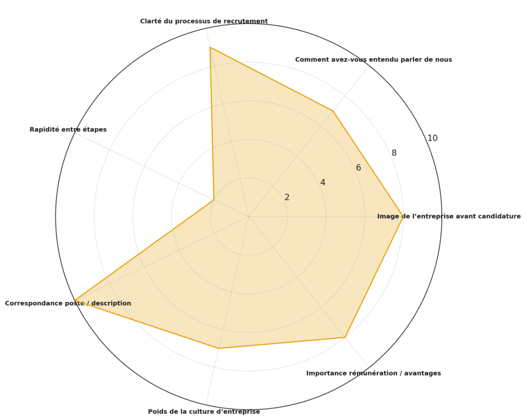 - Sur une échelle de 0 à 10, comment évaluez-vous la clarté du processus de recrutement ?